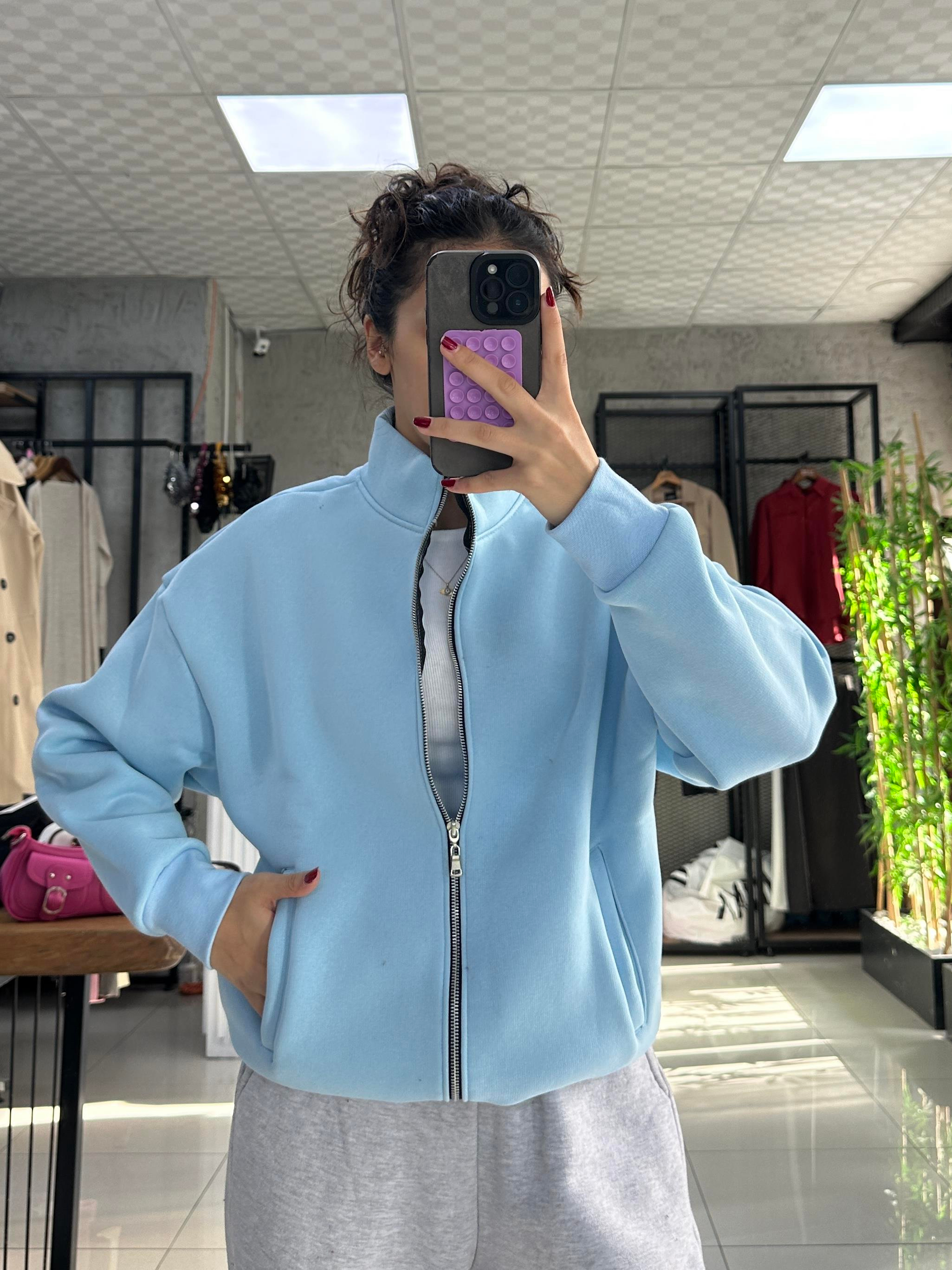 3 İPLİK BEBE MAVİSİ  DİK YAKA FERMUARLI SWEATSHIRT