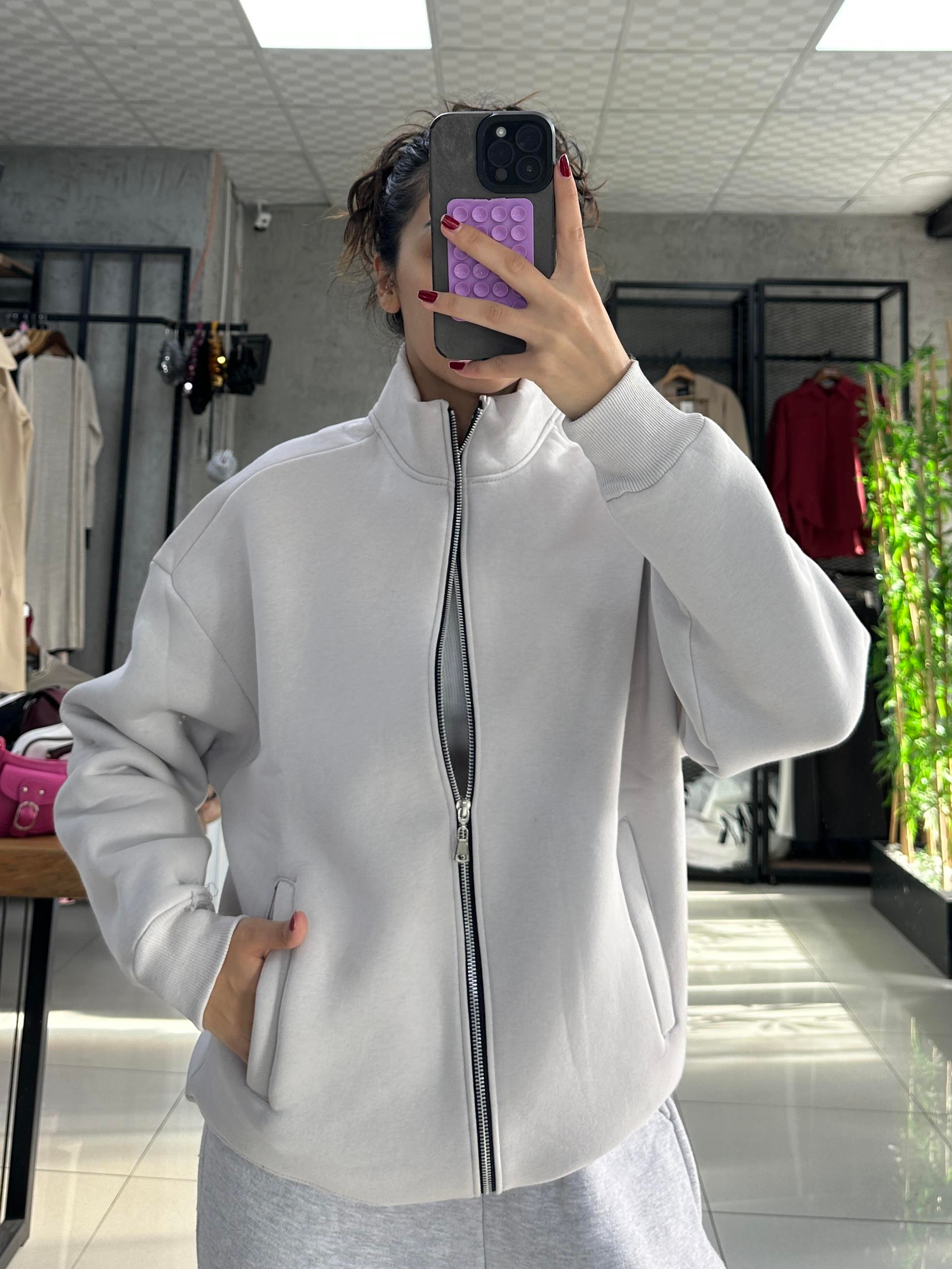 3 İPLİK GRİ  DİK YAKA FERMUARLI SWEATSHIRT