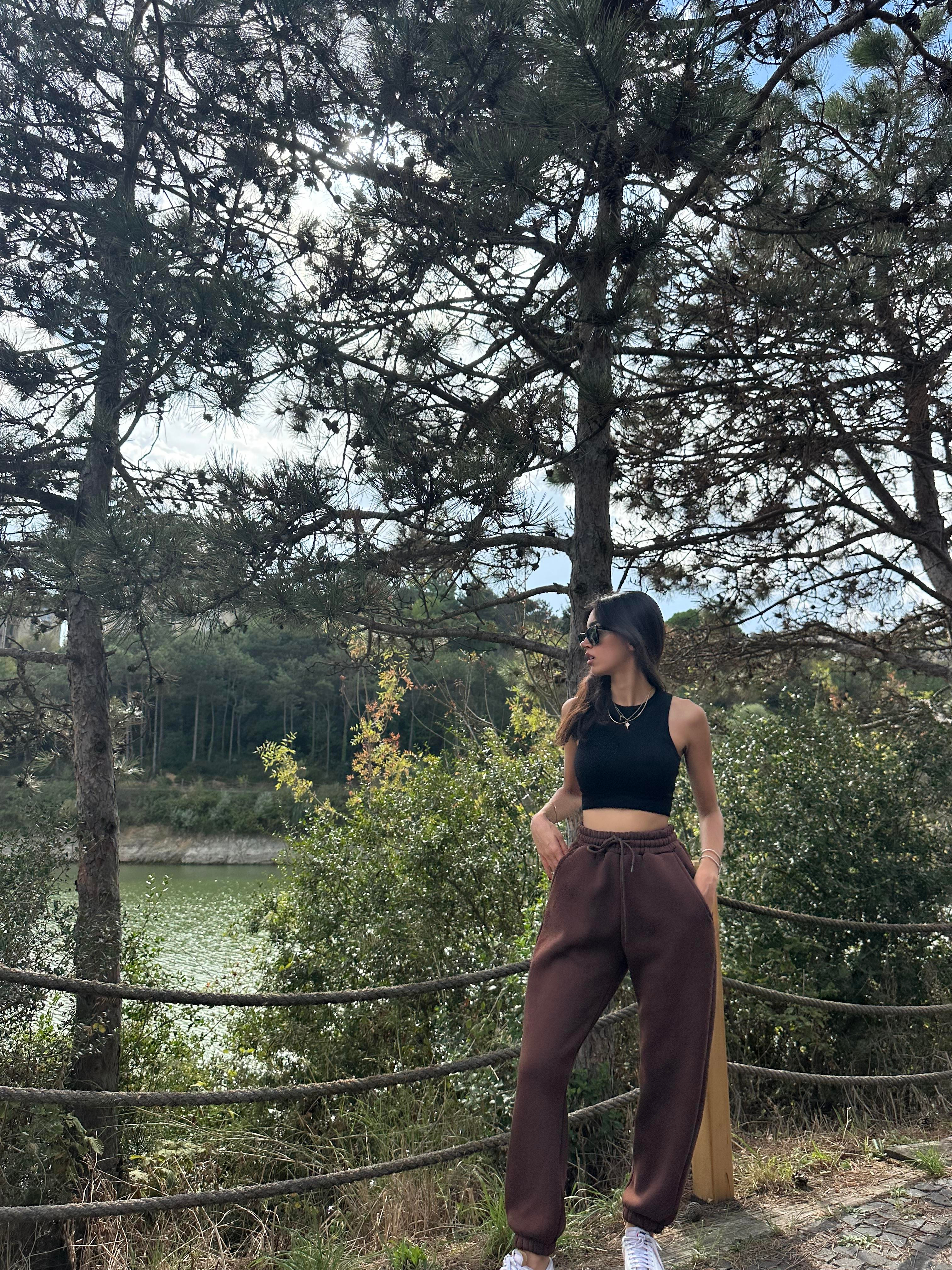 3 İPLİK KAHVERENGİ PAMUKLU OVERSIZE EŞOFMAN