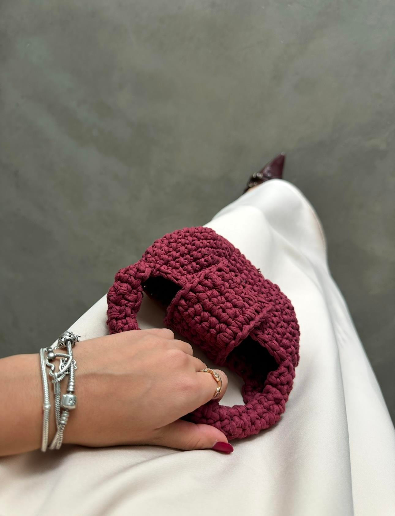 BORDO ÇITÇITLI ÖRGÜ ÇANTA