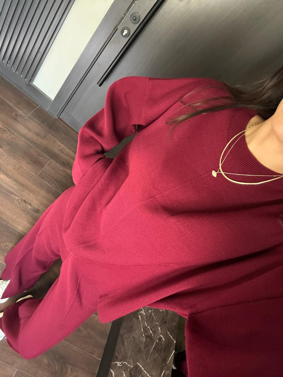 BORDO OVERSİZE ÇIMALI PANTOLON TRİKO  TAKIM