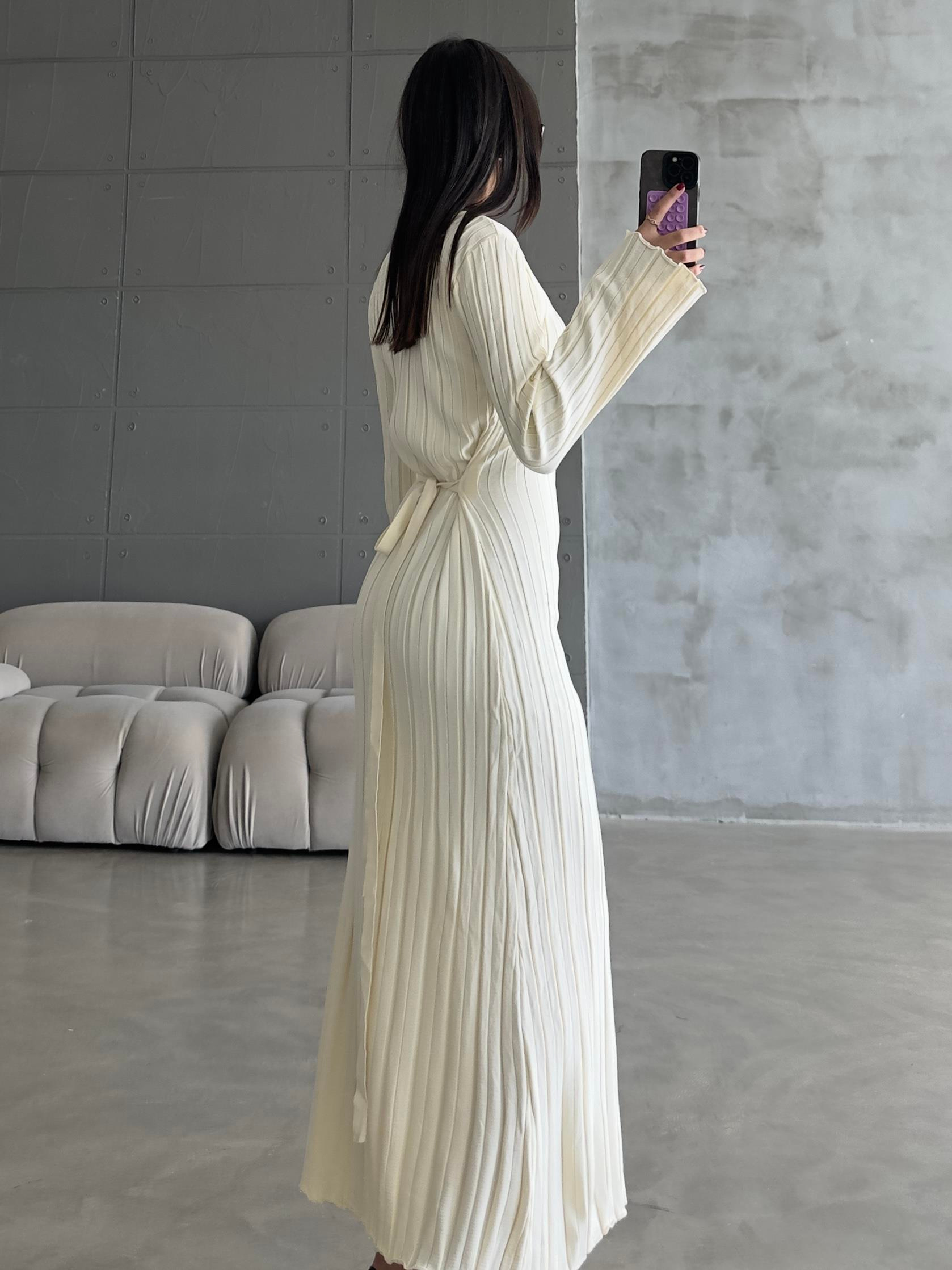 EKRU BAĞLAMALI TRİKO ELBİSE