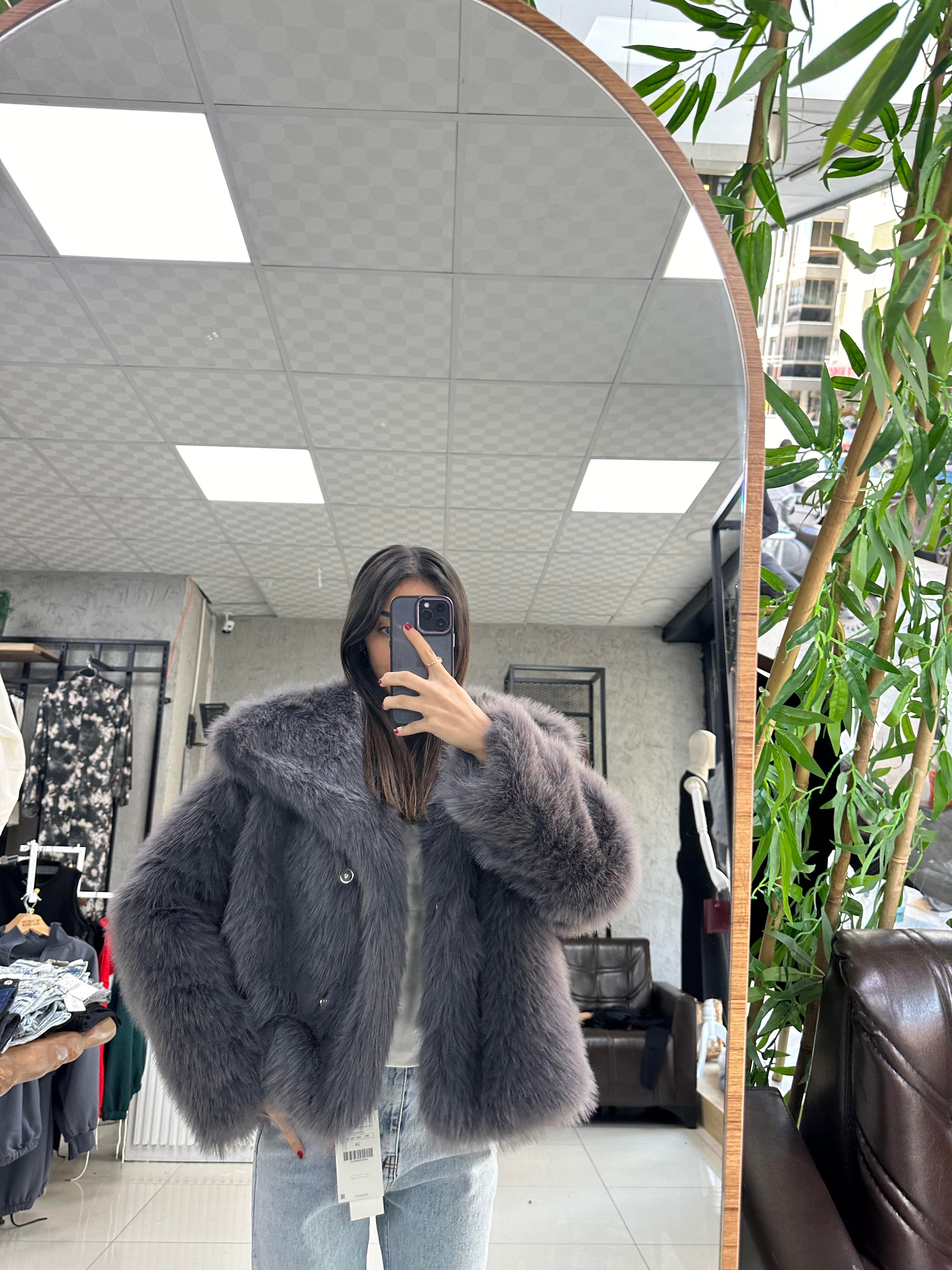 GRİ LOLİTA DÜĞMELİ  KÜRK