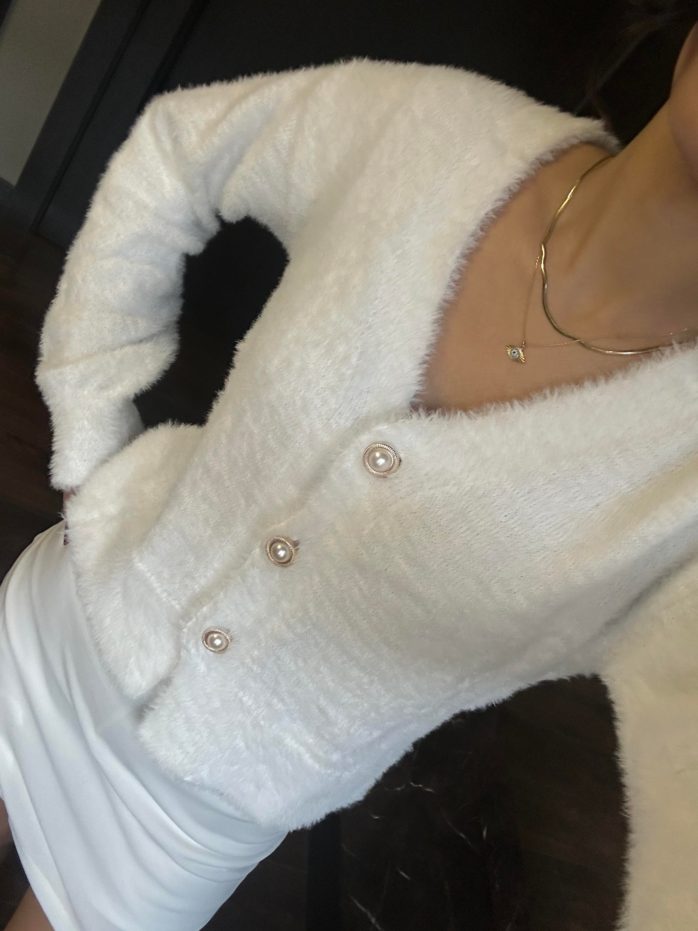 İNCİ DÜĞMELİ YUMOŞ BEYAZ HIRKA