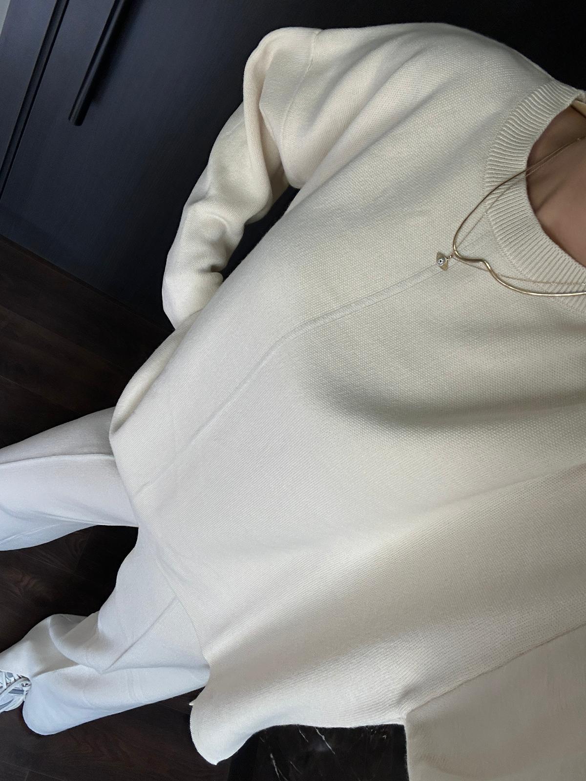KREM OVERSİZE ÇIMALI PANTOLON TRİKO  TAKIM