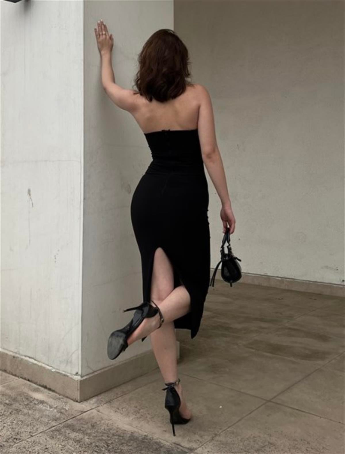 STRAPLEZ SİYAH DÜZ ELBİSE
