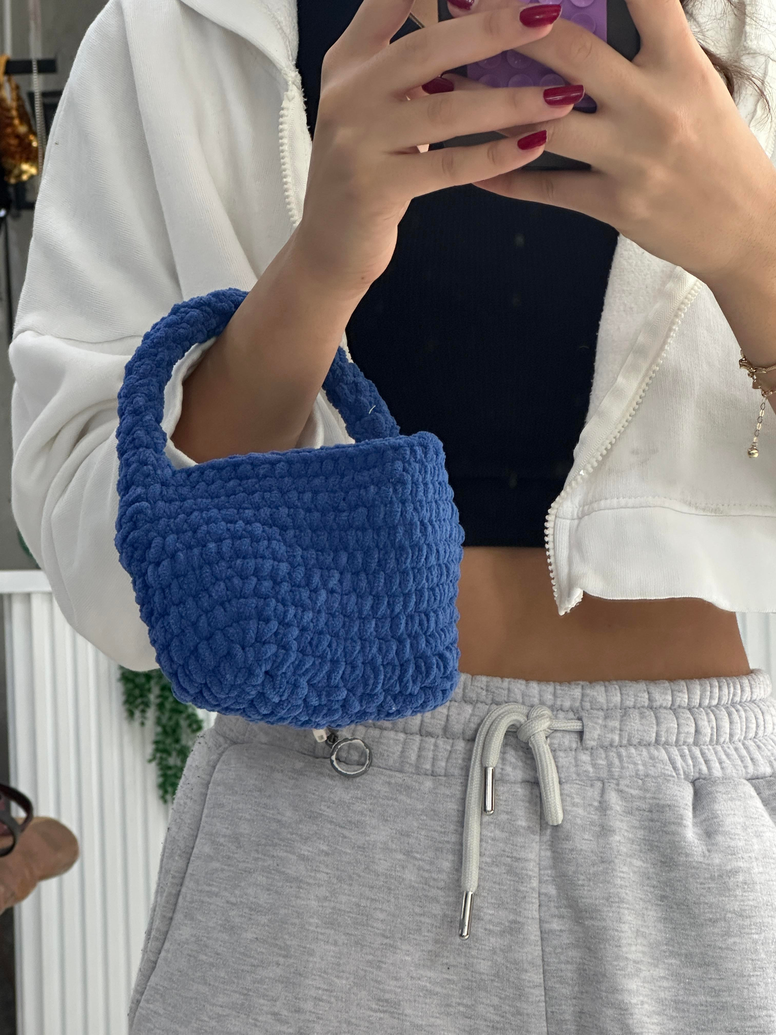 YUMUŞAK DOKU LACİVERT MİNİ ÇANTA